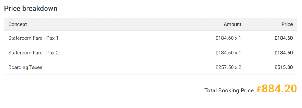 Below is the example of final price for two in interior cabin.