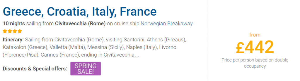 Please note: The currency on the website where the cruise is sold is GBP.