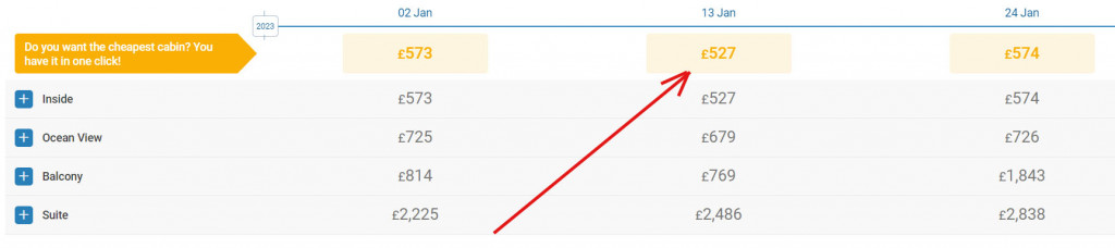 Please note: The currency on the website where the cruise is sold is GBP.