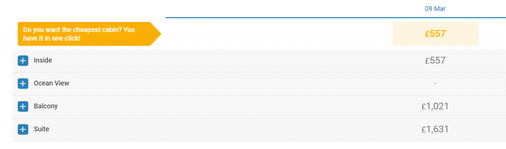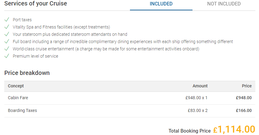 Below is the example of final price for two in an interior cabin with all taxes and fees included