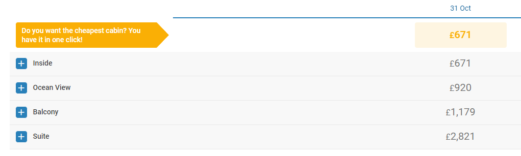 The cruise is sold through the UK agency. The currency on the website is british pound.