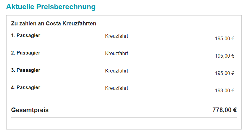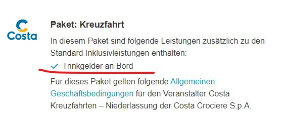 Gratuities are always included in Costa cruises booked from the Germany.