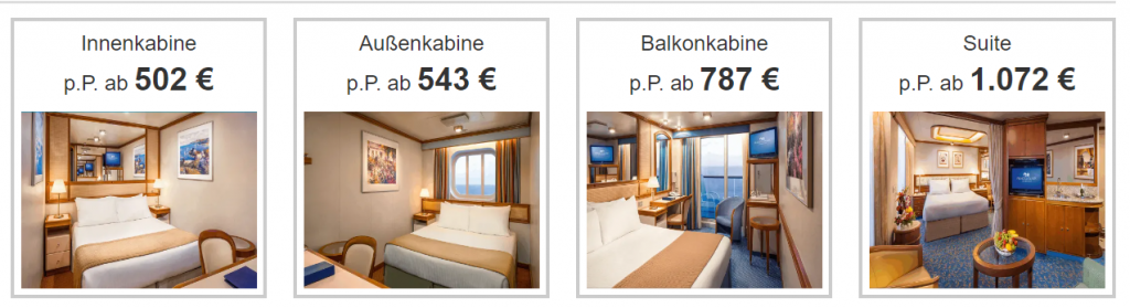 | Interior, Oceanview and Balcony | Mini-Suite and Club Class | Suite |