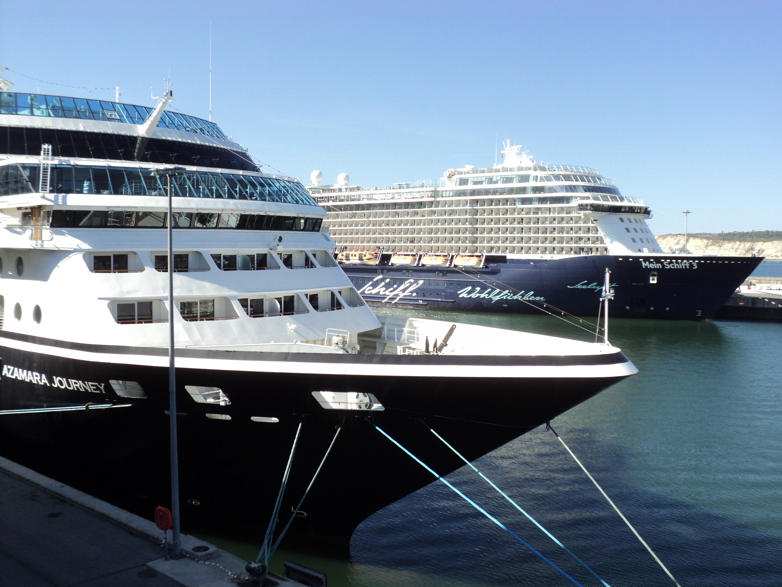 The cruise ship Azamara Journey of Azamara Club Cruises was built in 2000 , belongs to the R Class vessel series, and is 181 meters long with a displacement of 30,277 tons. The ship can accommodate up to 781 passengers on board in 355 cabins. The number of personnel on board is equal to 408 people.
